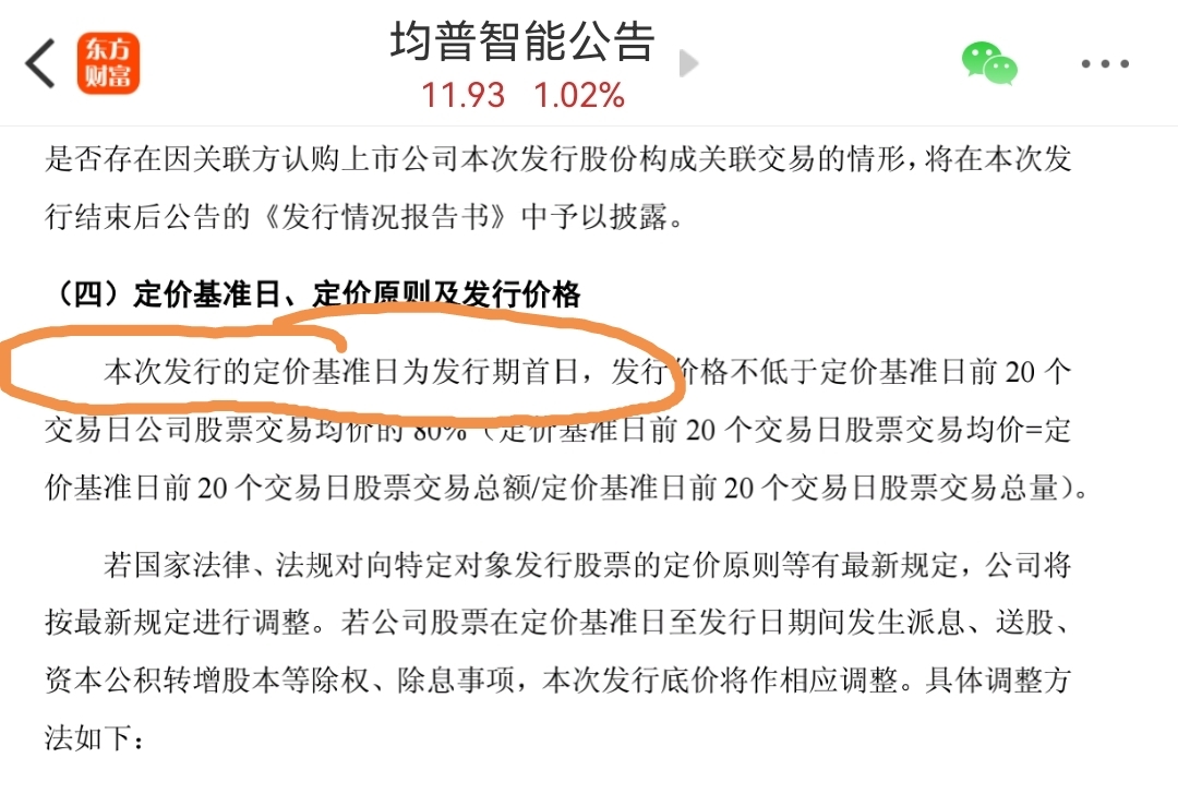 10月16日公告明确了定价基准日为发行期首日,也就是8个月以后,按均普智能的财务