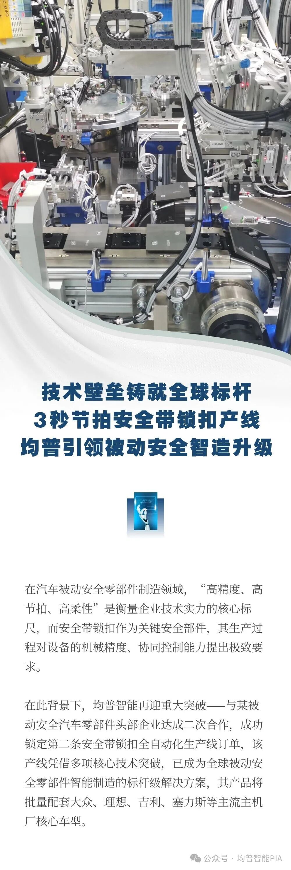 术壁垒铸就全球标杆!3秒节拍安全带锁扣产线,均普引领被动安全智造升级