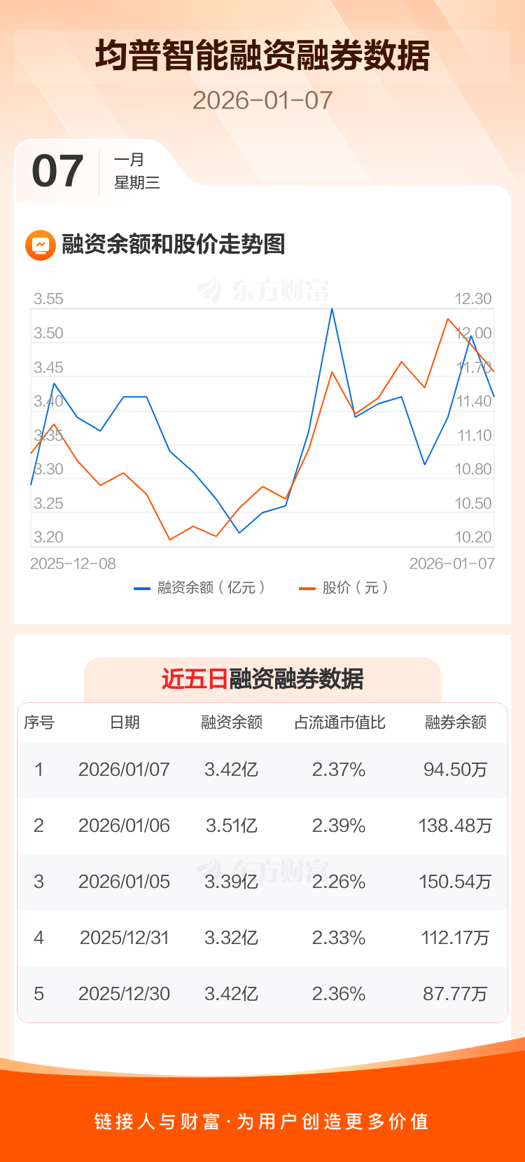 均普智能:融资净偿还899.89万元,融资余额3.42亿元