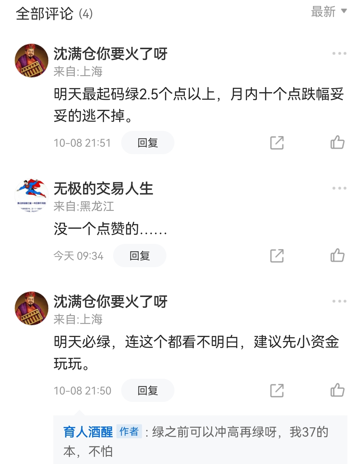温馨提示: 1.根据《证券法》规定,禁止编造、传播虚假信息或者误导性信息,扰乱证券市场;2.用户在本社区发表的所有资料、言论等仅代表个人观点,与本网站立场无关,不对您构成任何投资建议。用户应基于自己的独立判断,自行决定证券投资并承担相应风险。《东方财富社区管理规定》