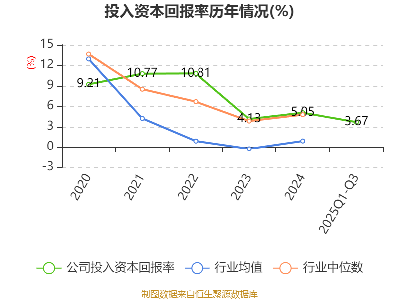 盈利能力方面, 2025年前三季度公司加权平均净资产收益率为4.55%,同比上升0.1个百分点。公司2025年前三季度投入资本回报率为3.67%,较上年同期上升0.13个百分点。