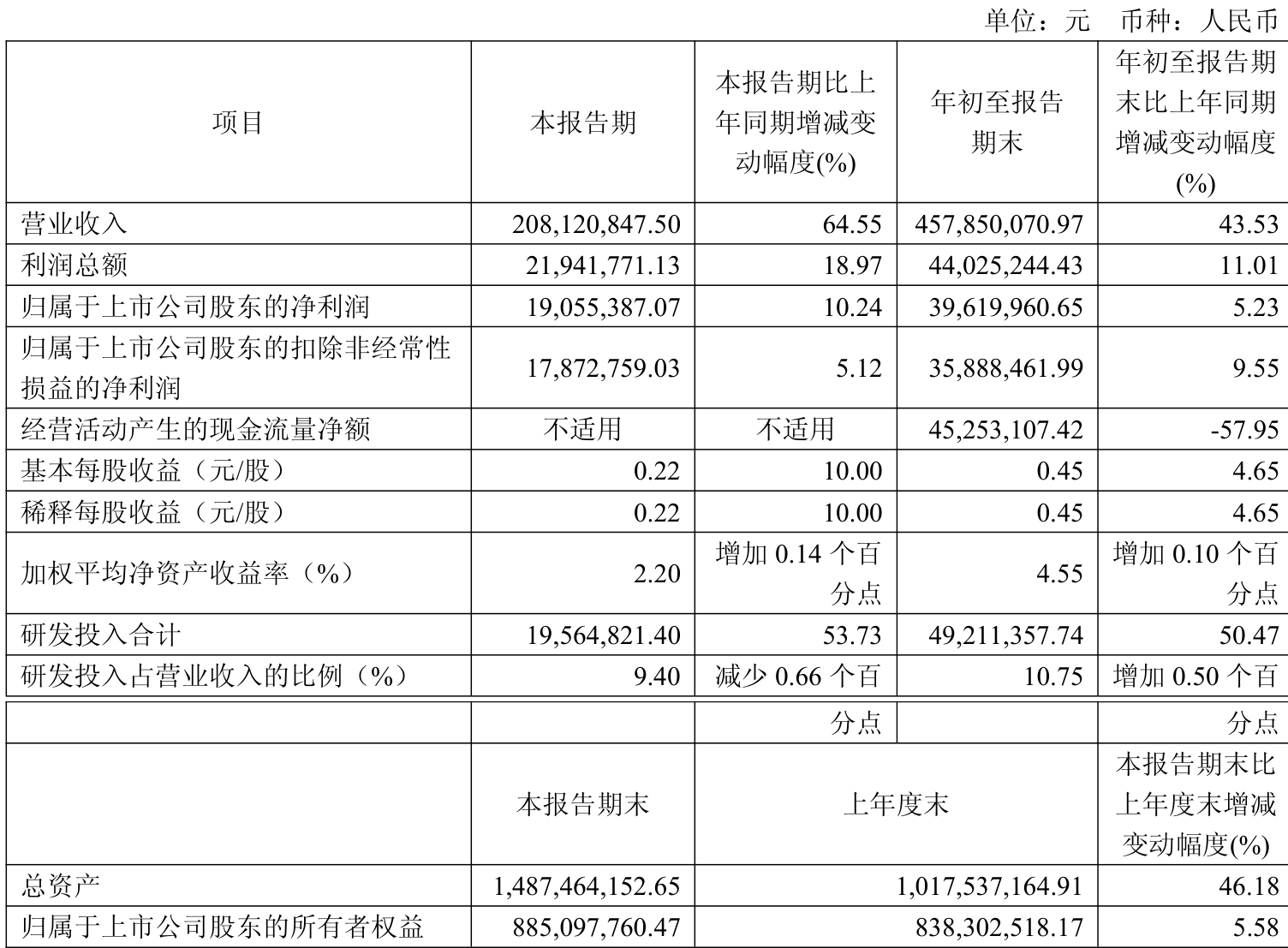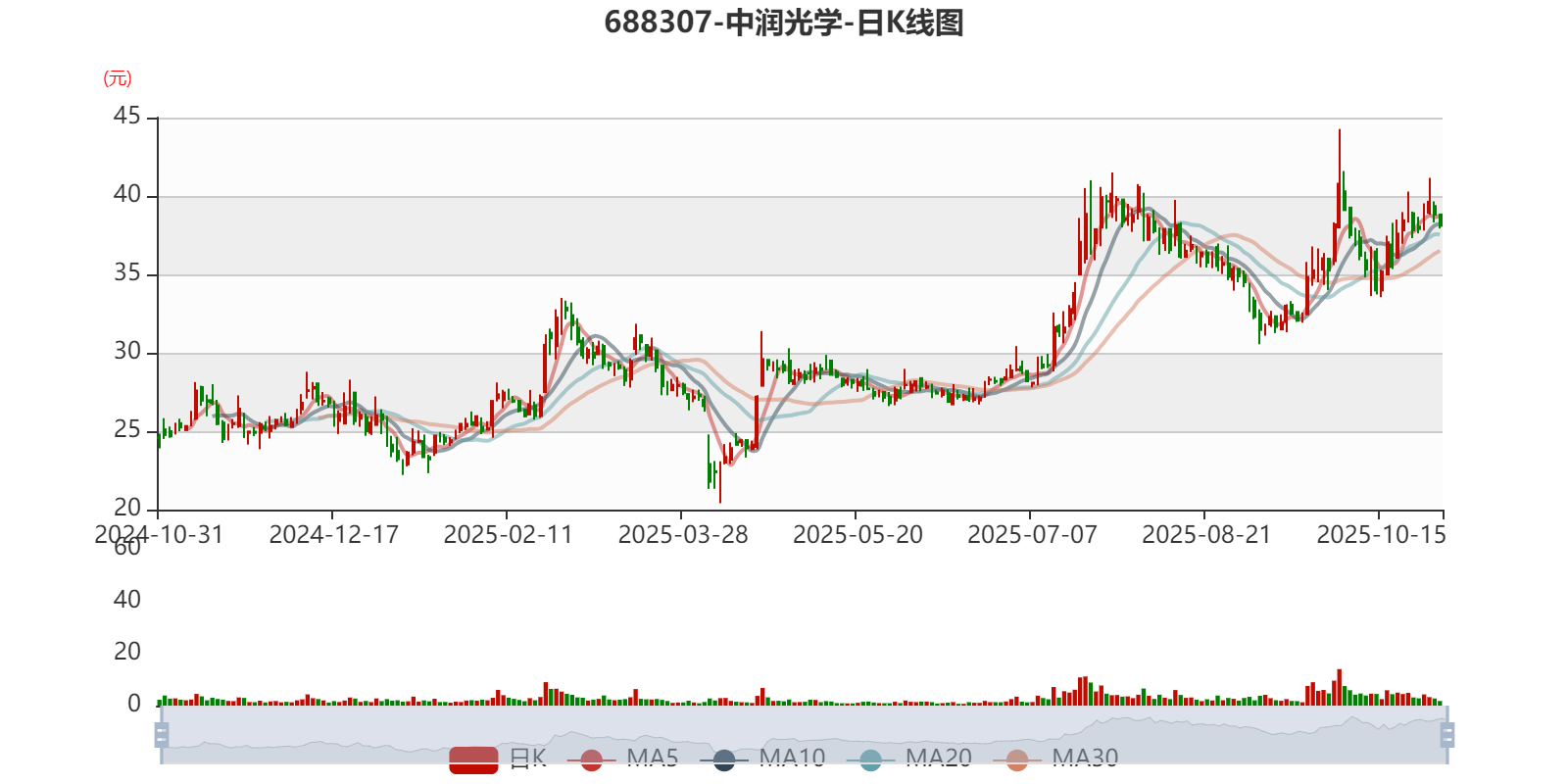 中证智能财讯中润光学(688307)10月31日披露2025年第三季度报告。前三季度公司实现营业总收入4.58亿元,同比增长43.53%;归母净利润3962万元,同比增长5.23%;扣非净利润3588.85万元,同比增长9.55%;经营活动产生的现金流量净额为4525.31万元,同比下降57.95%;报告期内,中润光学基本每股收益为0.45元,加权平均净资产收益率为4.55%。