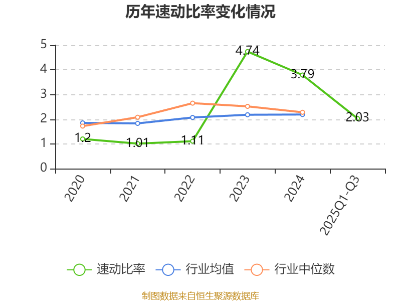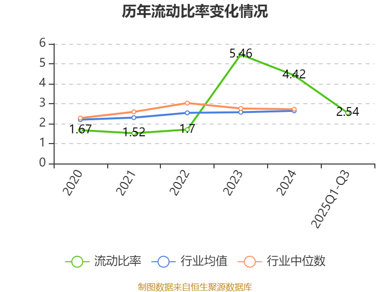 2025年前三季度,公司流动比率为2.54,速动比率为2.03。