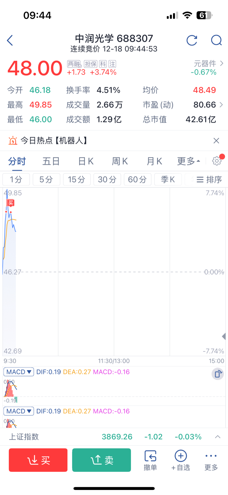 $中润光学(SH688307)$ 一早犹豫不决,又追高了