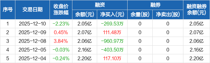 欧科亿:融资净偿还269.53万元,融资余额2.05亿元(12-10)