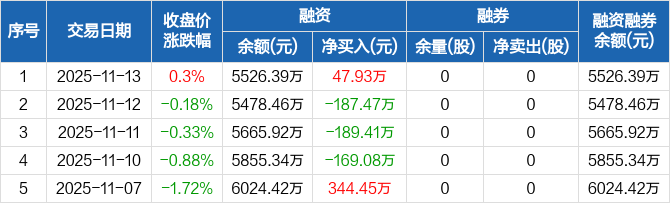恒誉环保:融资净买入47.93万元,融资余额5526.39万元(11-13)