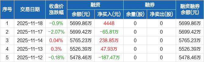 恒誉环保:融资净买入4448元,融资余额5699.86万元(11-18)