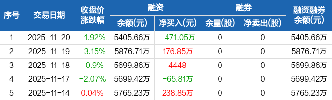 恒誉环保:融资净偿还471.05万元,融资余额5405.66万元(11-20)