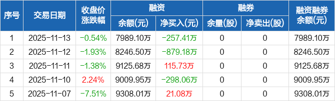 迈得医疗:融资净偿还257.41万元,融资余额7989.1万元(11-13)