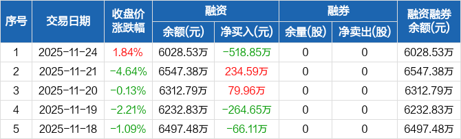 迈得医疗:融资净偿还518.85万元,融资余额6028.53万元(11-24)