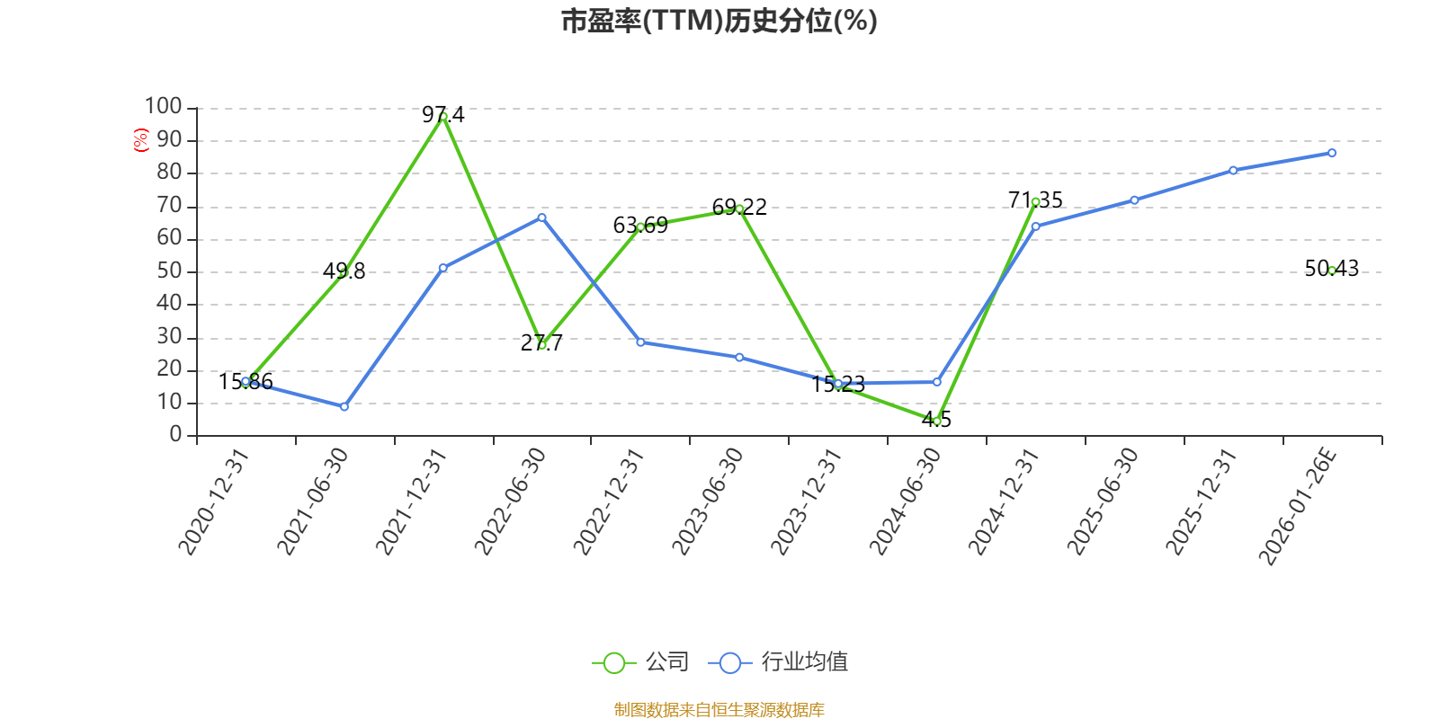 市盈率、市净率为负时,不显示当期分位数,会导致折线图中断。