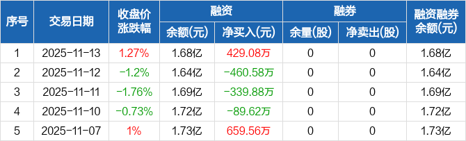 盟升电子:融资净买入429.08万元,融资余额1.68亿元(11-13)