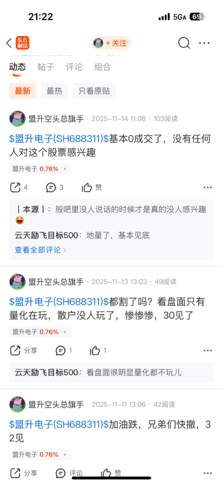 $盟升电子(SH688311)$ 镰刀们你们注意点,有证据在我手里,你们以后最好换个马甲继续看空,继续诱导散户下车,盟升股价30元底部的时候还故意制造恐慌。到底是谁在作妖,一目了然。我不是建议大家高位接盘,我是建议持股不动。你们一定要分清二者的差异,不要被居心叵测的人带节奏。