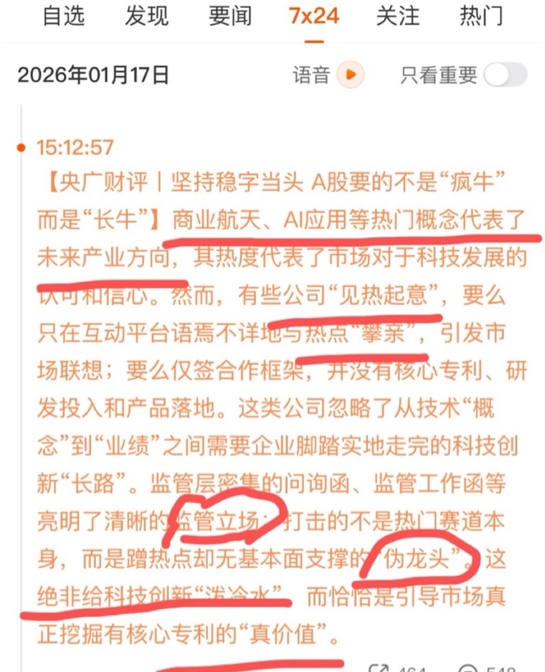 央广财经好好看看!商业航天、AI应用还是主赛道!降温炒作业绩垃圾股
