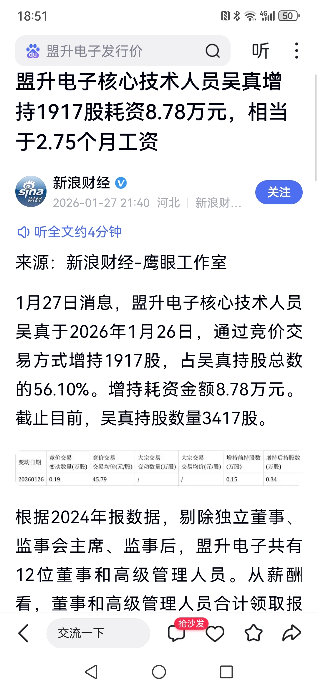 $盟升电子(SH688311)$ 核心技术人员45.79增持股票