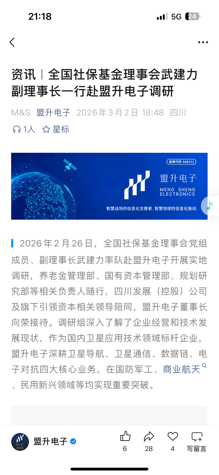 $盟升电子(SH688311)$ 国家队亲临调研,国资股东陪同,必然是长期超级大牛股 !!!