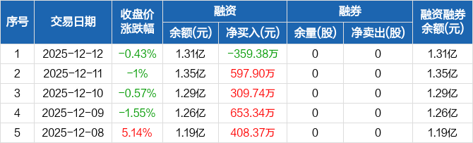 燕麦科技:融资净偿还359.38万元,融资余额1.31亿元(12-12)