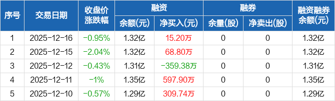 燕麦科技:融资净买入15.2万元,融资余额1.32亿元(12-16)
