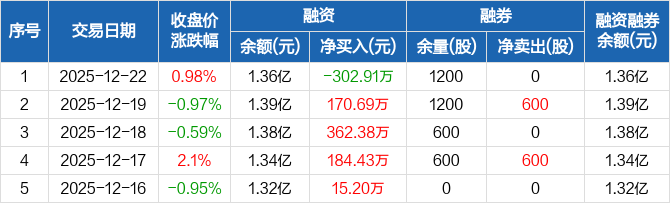 燕麦科技:融资净偿还302.91万元,融资余额1.36亿元(12-22)