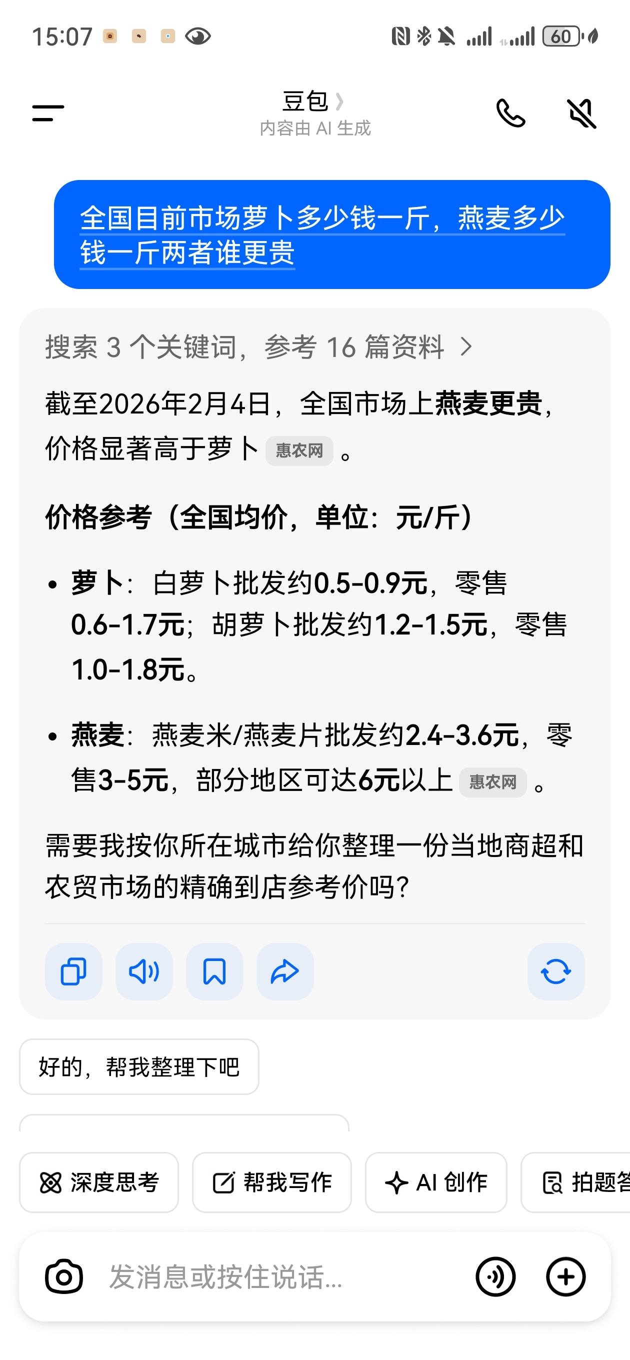 市场逐渐会纠偏,燕麦应该比萝卜贵的多