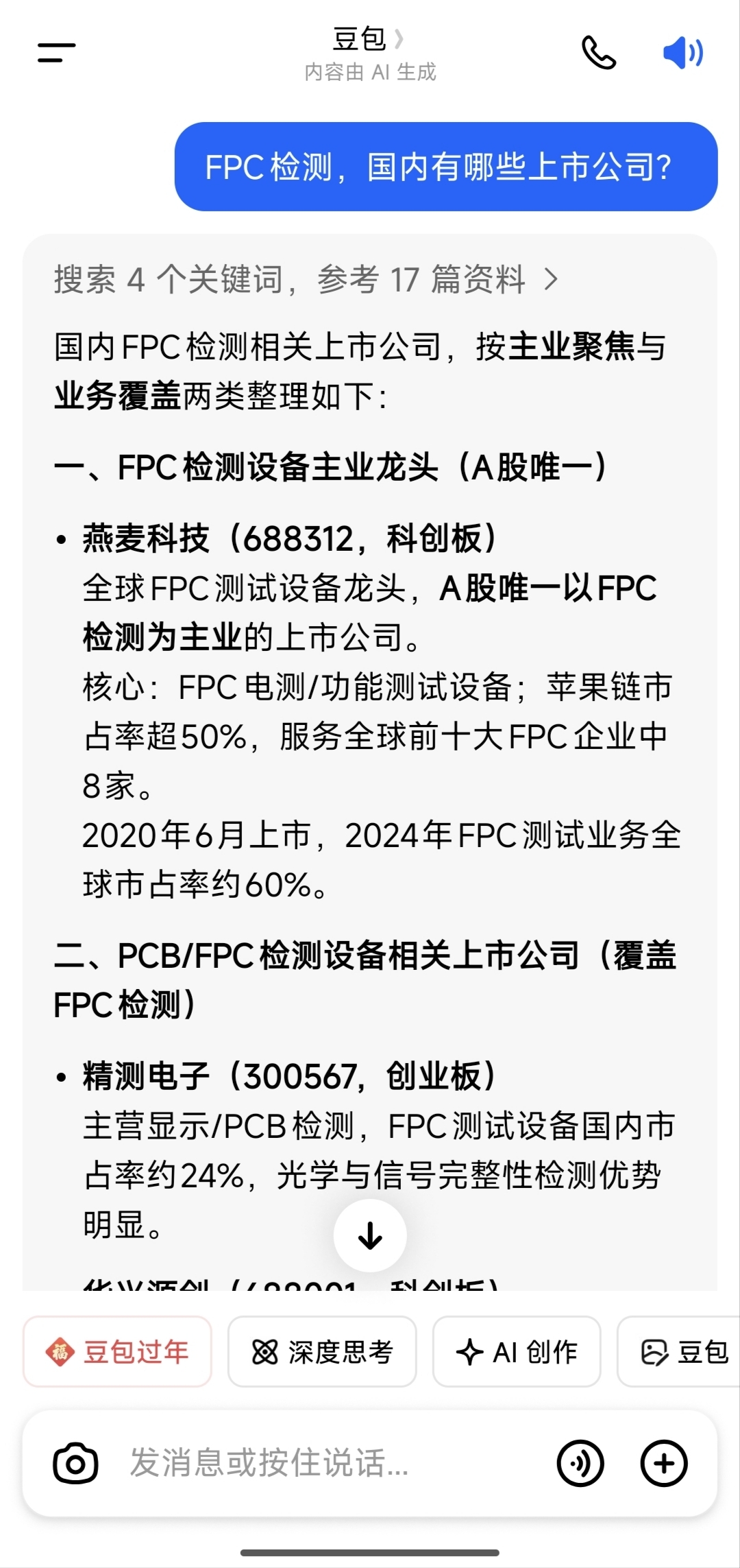 搜了豆包和百度文心,燕麦有这个潜力??谁深入研究过的朋友给分析一下燕麦在FPC检