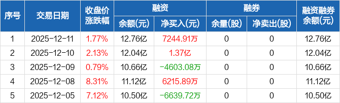 仕佳光子:融资净买入7244.91万元,融资余额12.76亿元(12-11)