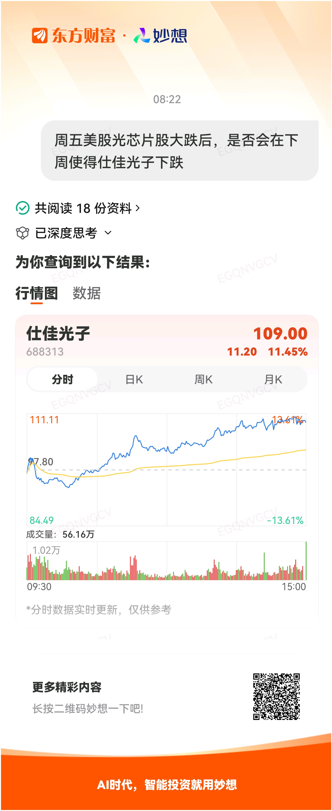 #@妙想,你怎么看?# 妙想一下:周五美股光芯片股大跌后,是否会在下周使得仕佳光子下跌