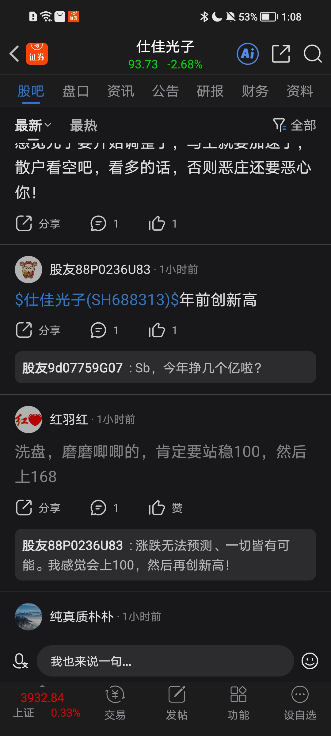 $仕佳光子(SH688313)$ 两只sb犬配合着唱