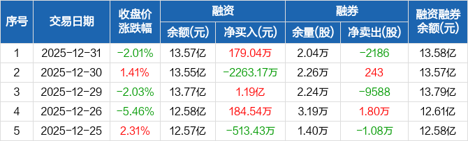 仕佳光子:融资净买入179.04万元,融资余额13.57亿元(12-31)