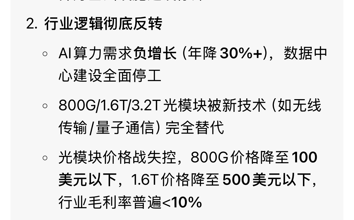 各位,星期一无论如何都得割肉了!光模块是一场骗局,现在豆包说行业逻辑已经反转,需