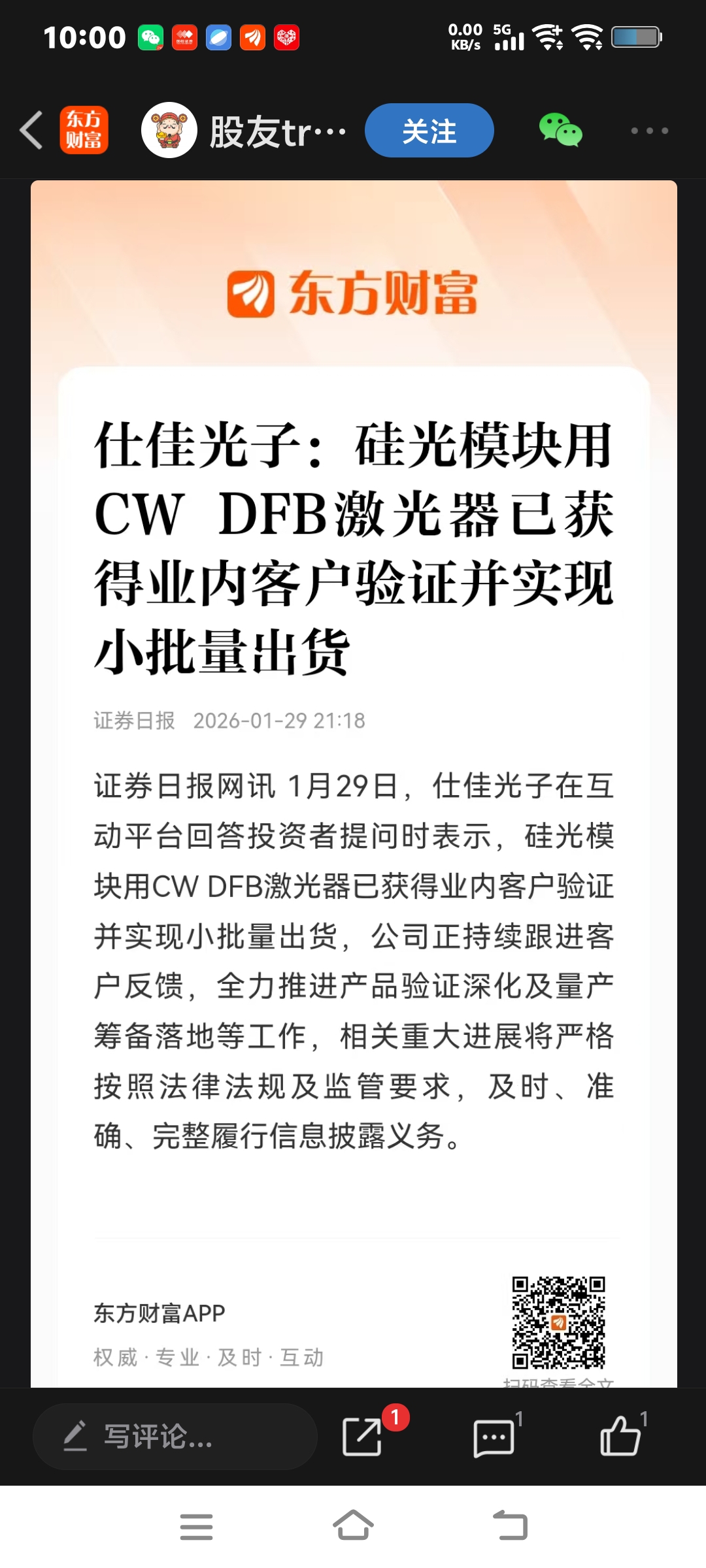 温馨提示: 1.根据《证券法》规定,禁止编造、传播虚假信息或者误导性信息,扰乱证券市场;2.用户在本社区发表的所有资料、言论等仅代表个人观点,与本网站立场无关,不对您构成任何投资建议。用户应基于自己的独立判断,自行决定证券投资并承担相应风险。《东方财富社区管理规定》