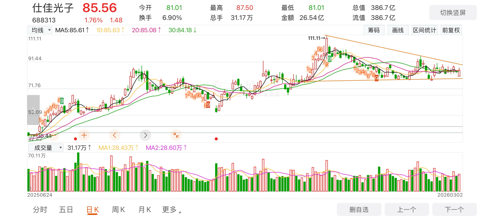 下跌趋势,明日压力位89.26附近,带量冲破可高看一眼,反复震荡可减仓观望。