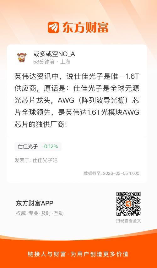 英伟达资讯中,说仕佳光子是唯一1.6T供应商,原话是:仕佳光子是全球无源光芯片龙头,AWG(阵列波导光栅)芯片全球领先,是英伟达1.6T光模块AWG芯片的独供厂商!