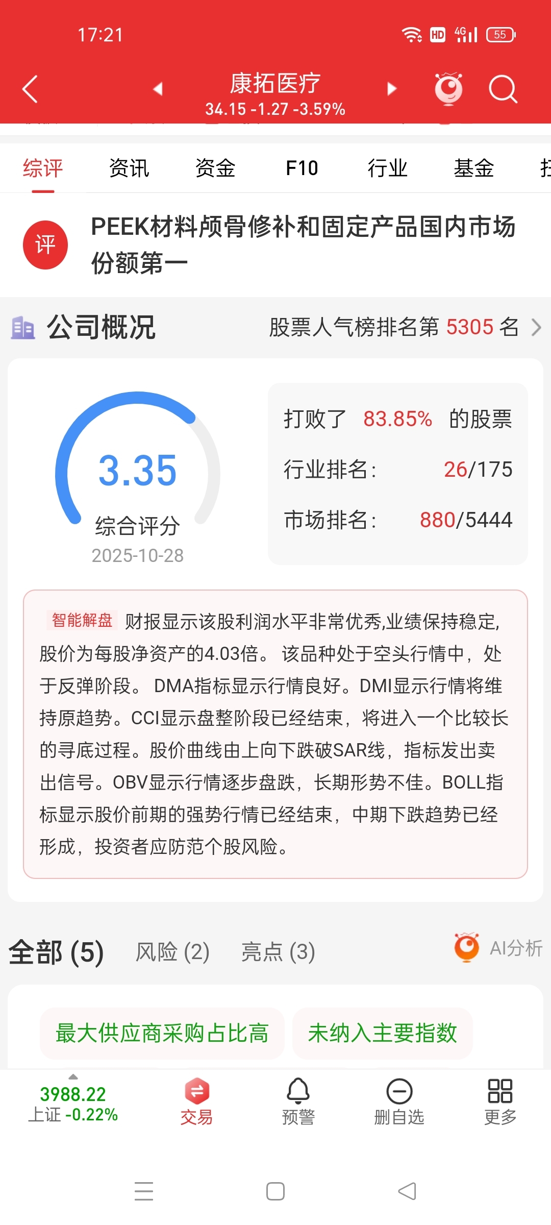 刚看到股权激励的价格是14元,目前股价高出它2.5倍。在看看软件给出的评判: