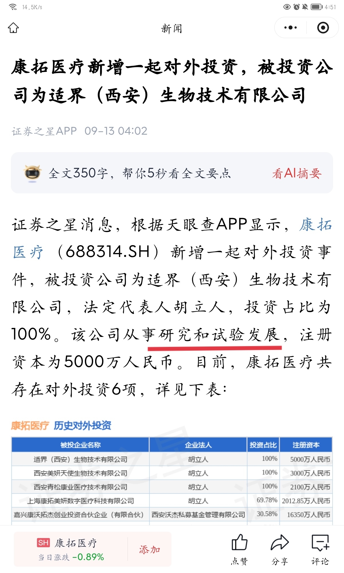$康拓医疗(SH688314)$ 太低调了,有新的对外投资都没对外宣传,讲究实干!