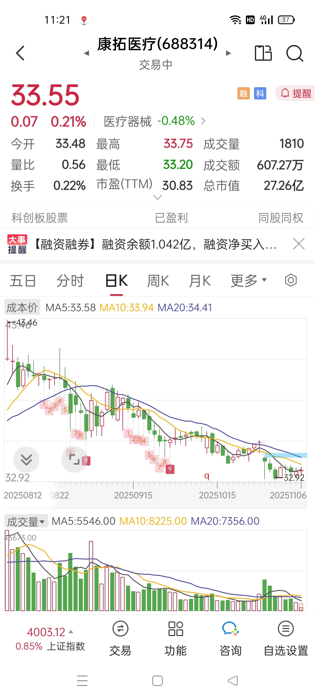周四收盘能上33.58,明天就止跌了。否则周五继续跌