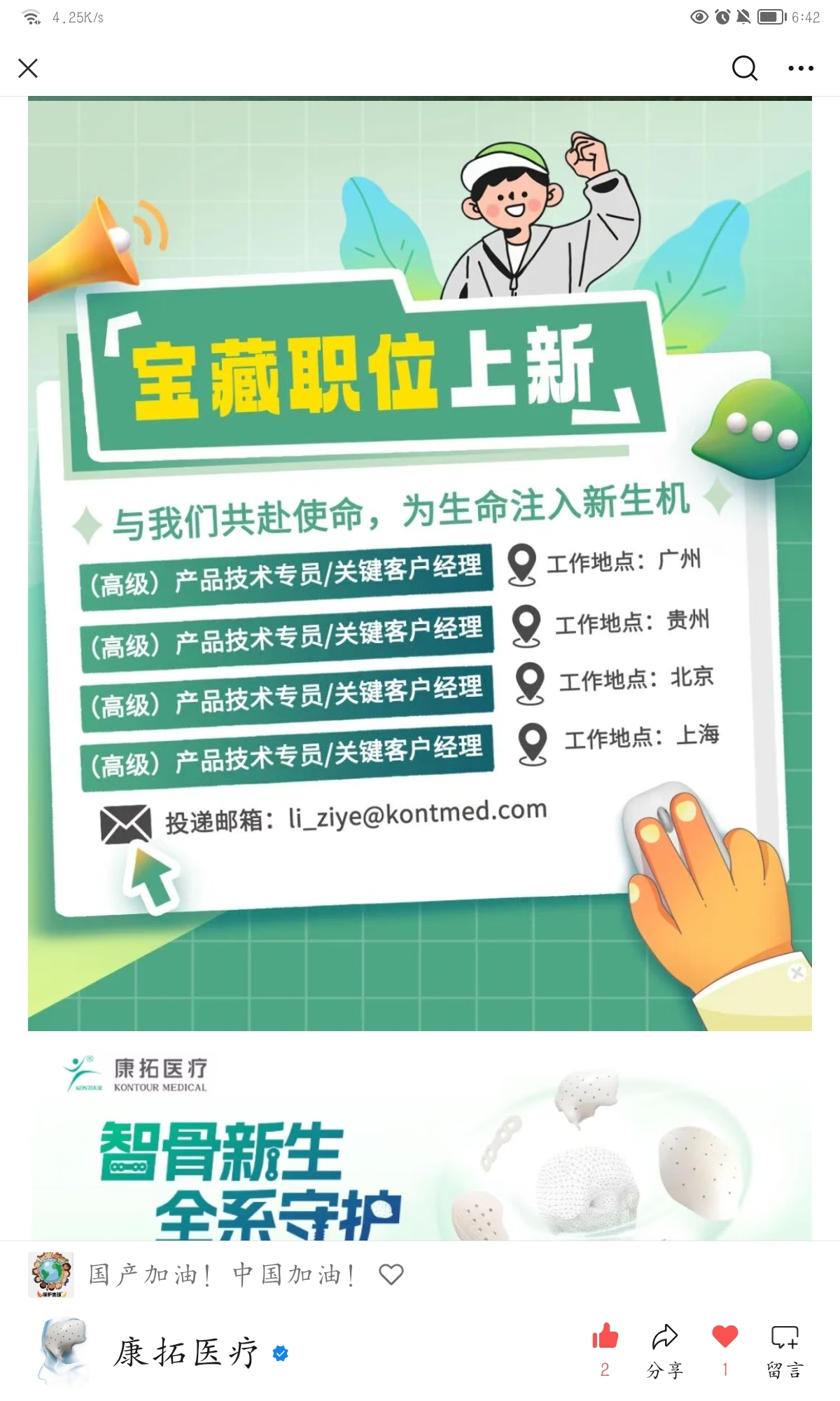 $康拓医疗(SH688314)$ 需求火热,北上广和贵州缺人手了,广大网友可以投可以投简历啦