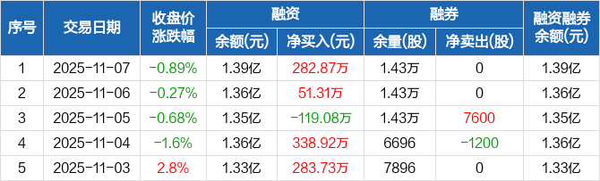 诺禾致源:融资净买入282.87万元,融资余额1.39亿元(11-07)