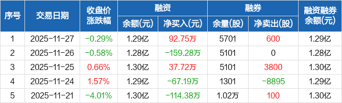 诺禾致源:融资净买入92.75万元,融资余额1.29亿元(11-27)