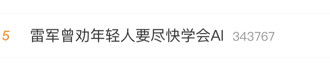 2月6日,词条#雷军曾劝年轻人要尽快学会AI#登上微博热搜。