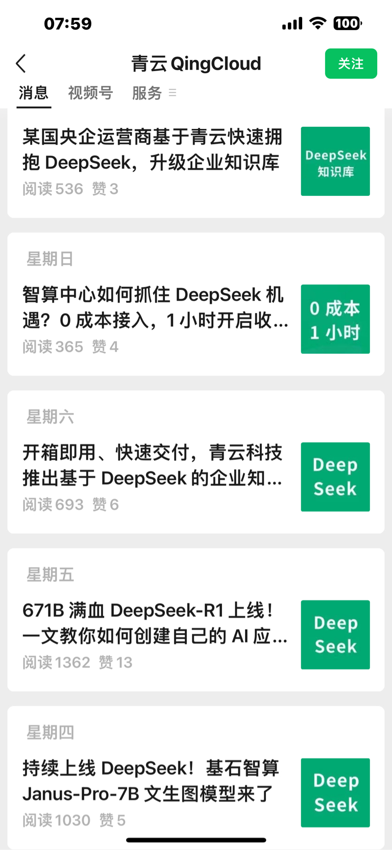 青云围绕deepseek的业务开展一刻不停歇,只会越走越快越走越深入!!