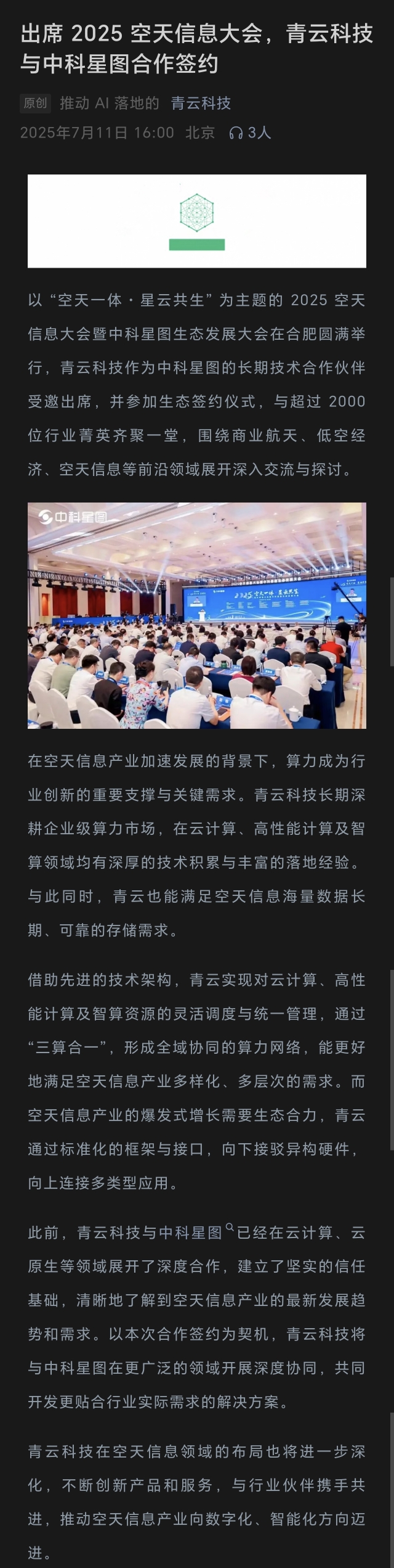 $青云科技-U(SH688316)$ 航天算力+低空经济+中科星图