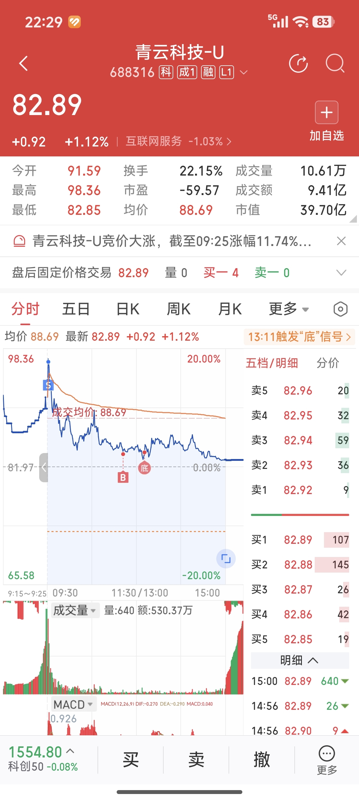 $青云科技-U(SH688316)$ 昨晚挂的条件单,没想到帮大忙了