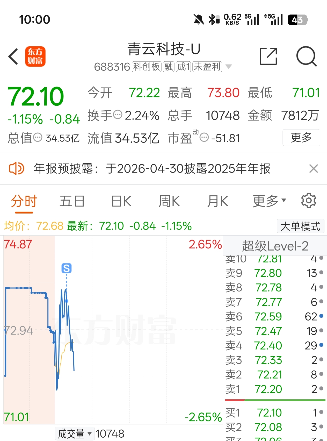 $青云科技-U(SH688316)$ 先跑了,玛德吓死人