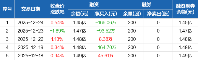 之江生物:融资净偿还166.06万元,融资余额1.45亿元(12-24)