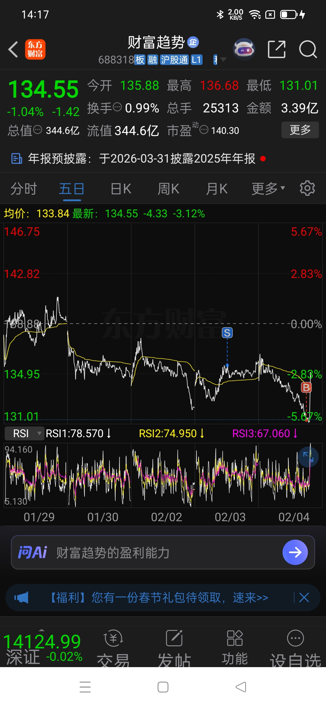 $财富趋势(SH688318)$
