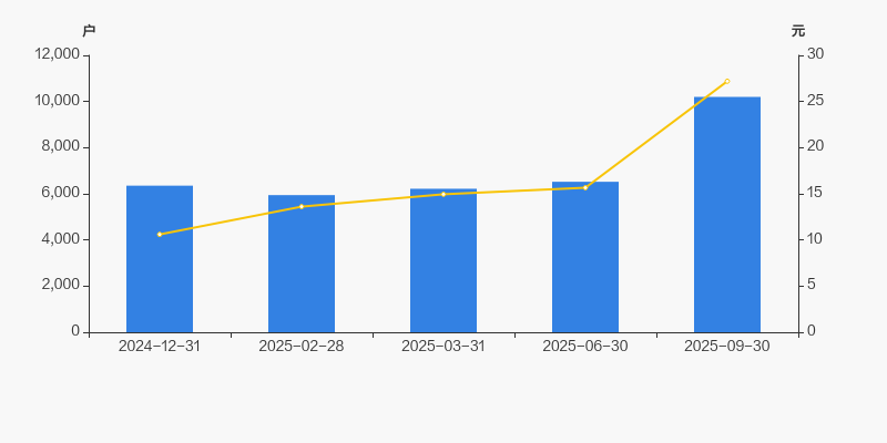 自2025年2月28日以来,公司股东户数连续3期上涨,截至目前增幅为71.60%。2025年2月28日至2025年9月30日区间股价上涨99.85%。