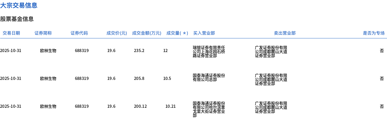 欧林生物今日大宗交易折价成交400.07万股,成交额7841.32万元