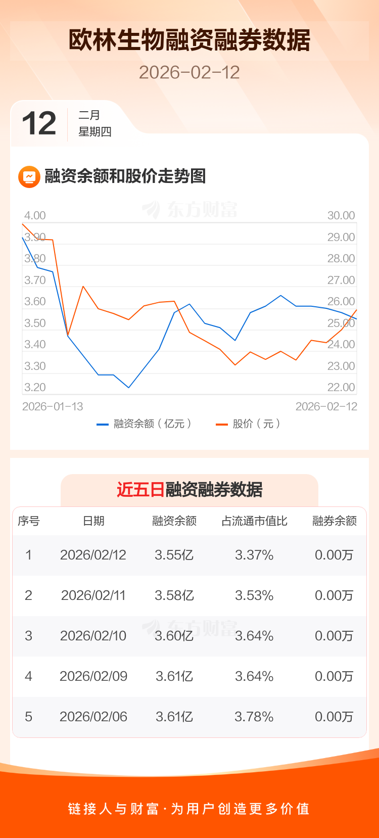 交易所最新数据显示,欧林生物于2026年2月12日获融资买入963.29万元,融资偿还1277.38万元,当日融资净偿还314.09万元。目前,该股融资余额3.55亿,占流通市值比例为3.37%。