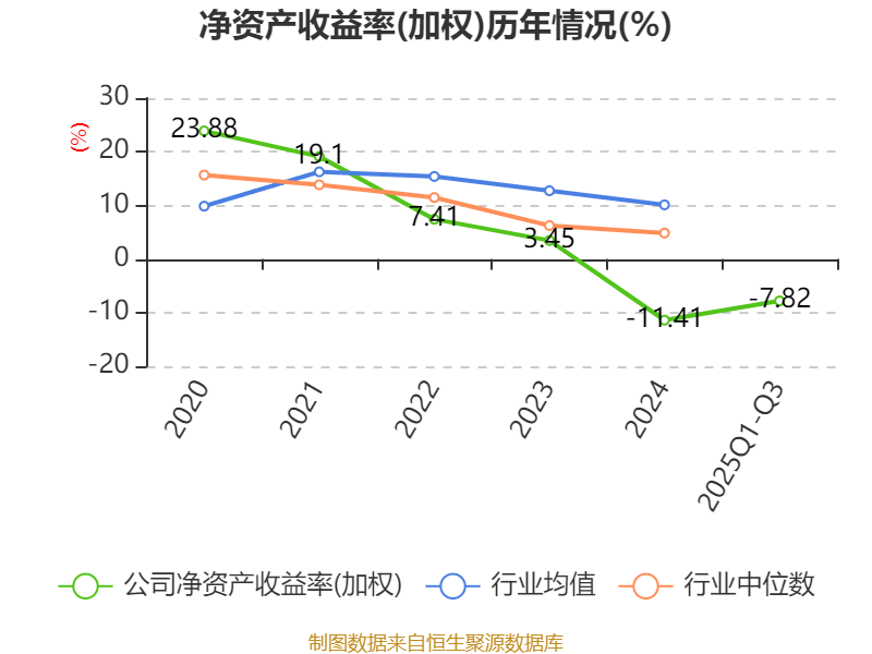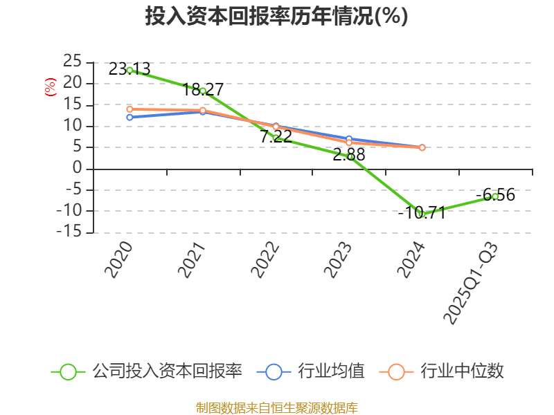 盈利能力方面, 2025年前三季度公司加权平均净资产收益率为-7.82%,同比下降2.39个百分点。公司2025年前三季度投入资本回报率为-6.56%,较上年同期下降1.67个百分点。